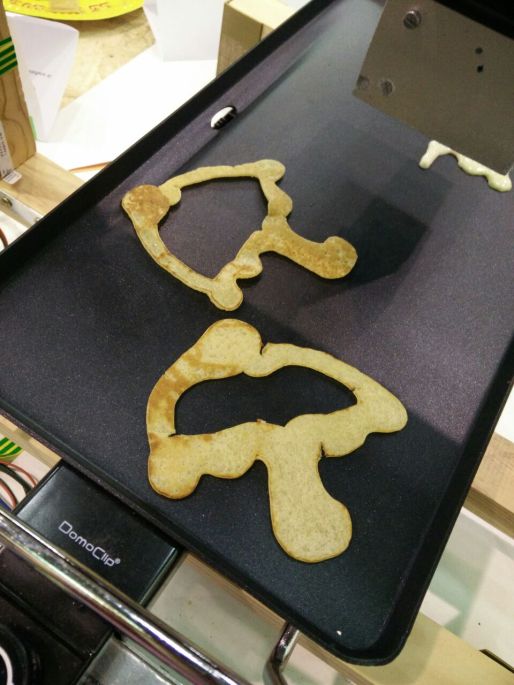 Tout simplement une imprimante à pancakes. Le principe est simple, on se déplace sur 2 axes et on dépose de la pâte sur une plaque de cuisson.