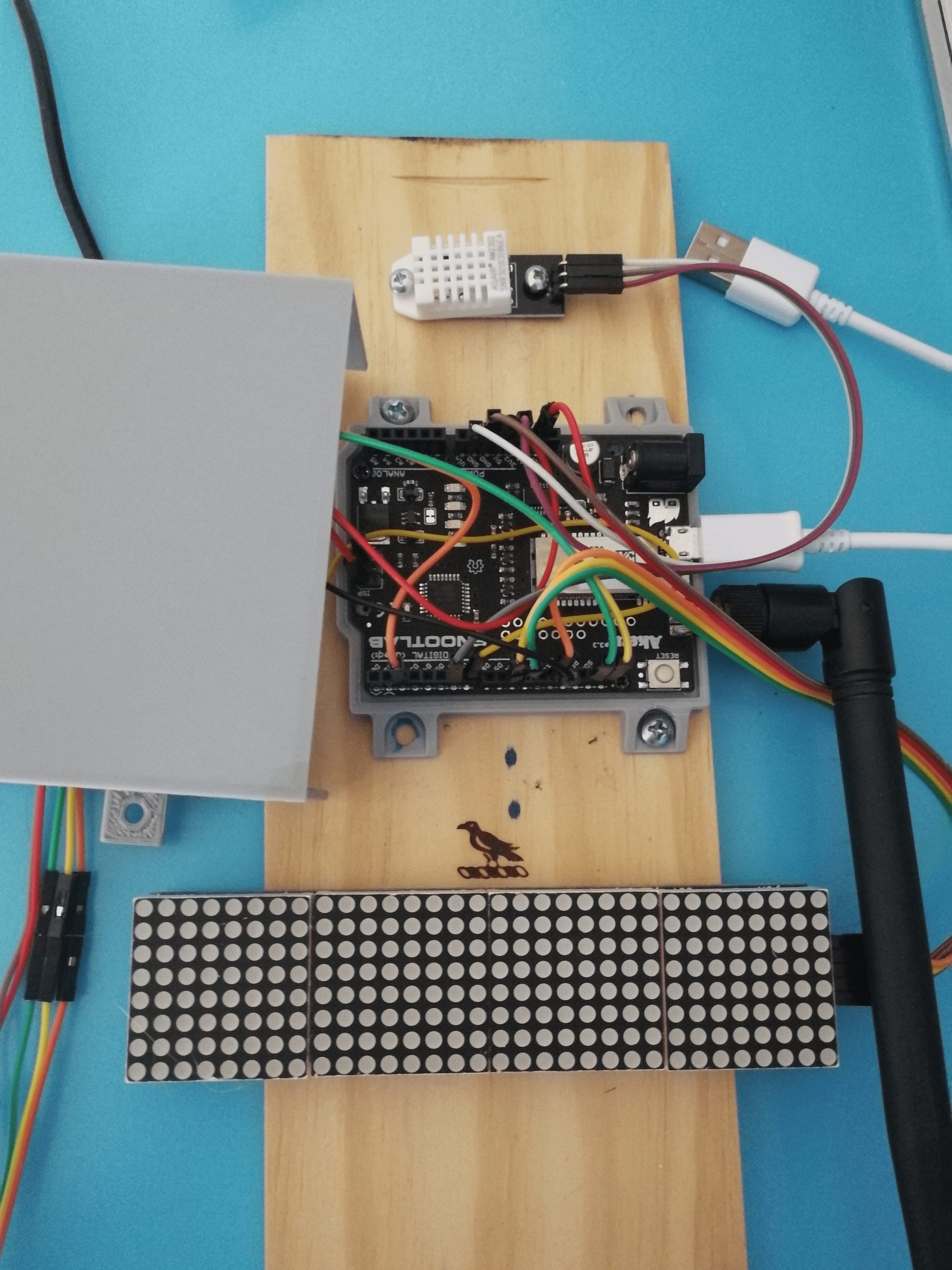 Après avoir testé toutes les librairies pour les DHT j’ai choisi la TroykaDHT qui prend deux fois moins de place. J’ai fait de même pour la librairie du capteur RGB/Lumière (la Sparkfun est bien plus gourmande que celle d’Adafruit) et pour la gestion de la matrice de LED (je voulais utiliser la MD_Parola qui s’ajoute à la librairie MAX72XX pour proposer des fonctions de scrolling et d’autres dont je n’avais pas besoin j’ai donc codé le scrolling directement dans mon sketch).